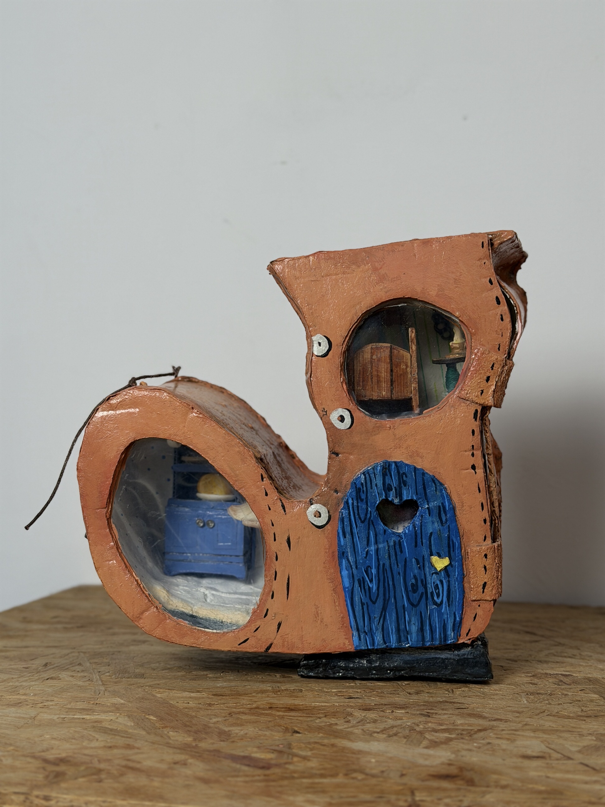 The little house also has a door that closes with a simple cord, as if hiding a small secret inside.