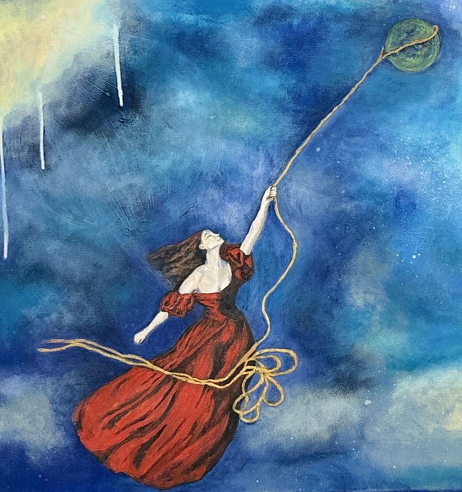 Quadro em que queria expressar uma mulher forte a “amarrar” num laço um mundo inteiro numa galáxia bem distante.