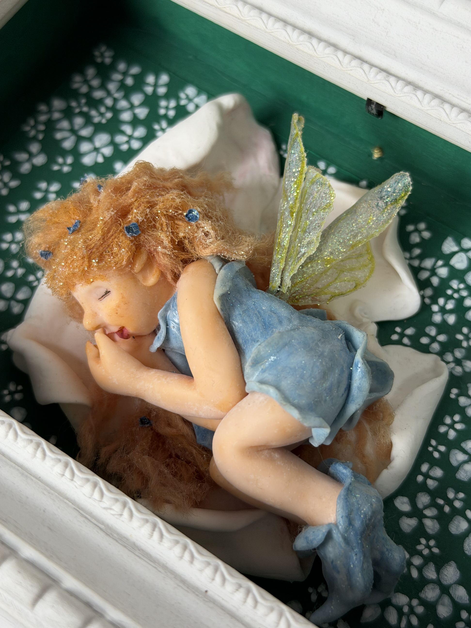 Moldura comprada em madeira, uma curiosidade o fato da fada brilha no escuro.