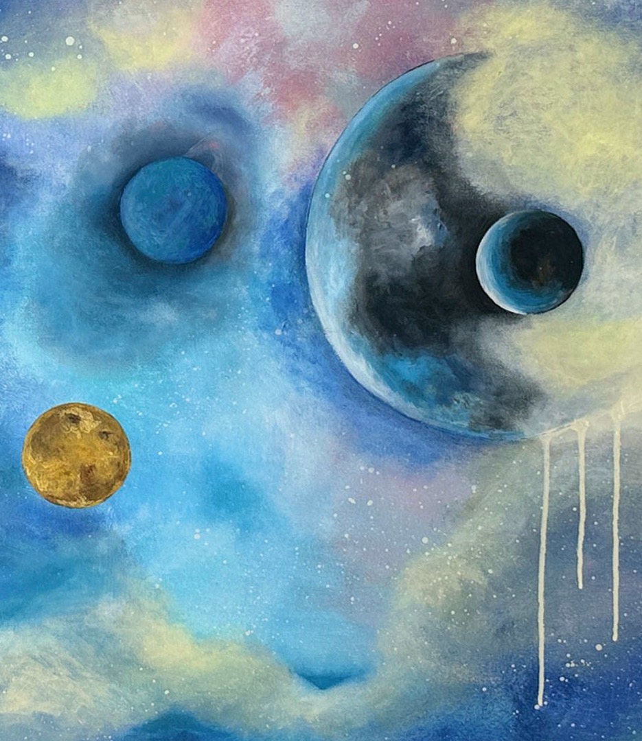 Quadro em que queria expressar uma mulher forte a “amarrar” num laço um mundo inteiro numa galáxia bem distante.